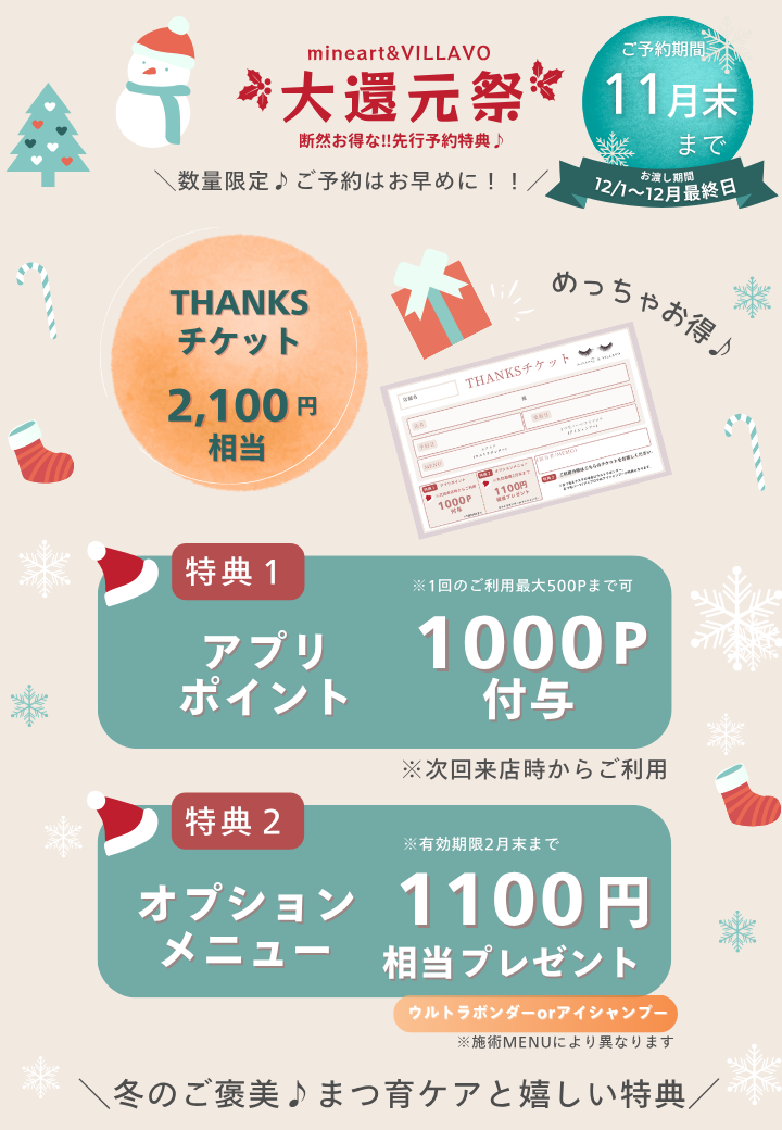 mineart&VILLAVOでは【年末の大還元祭キャンペーン】を開催します✨