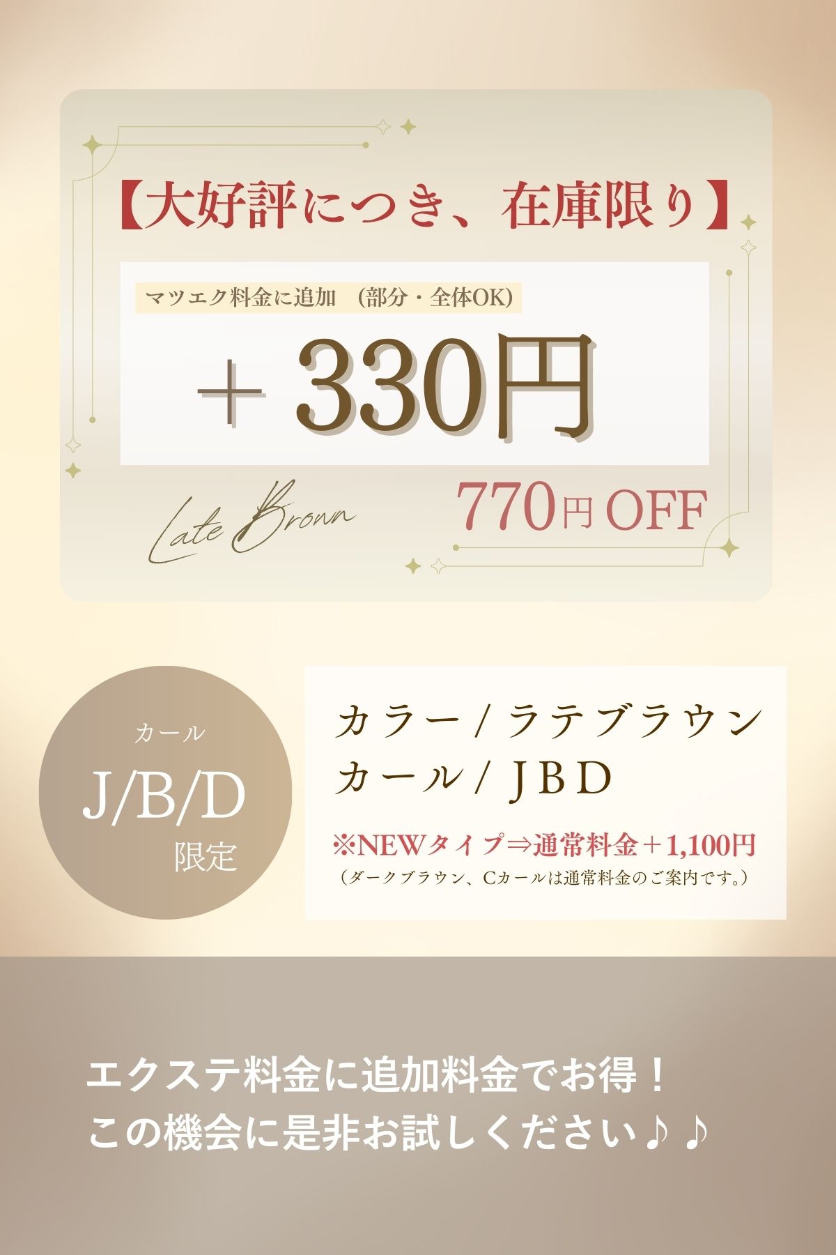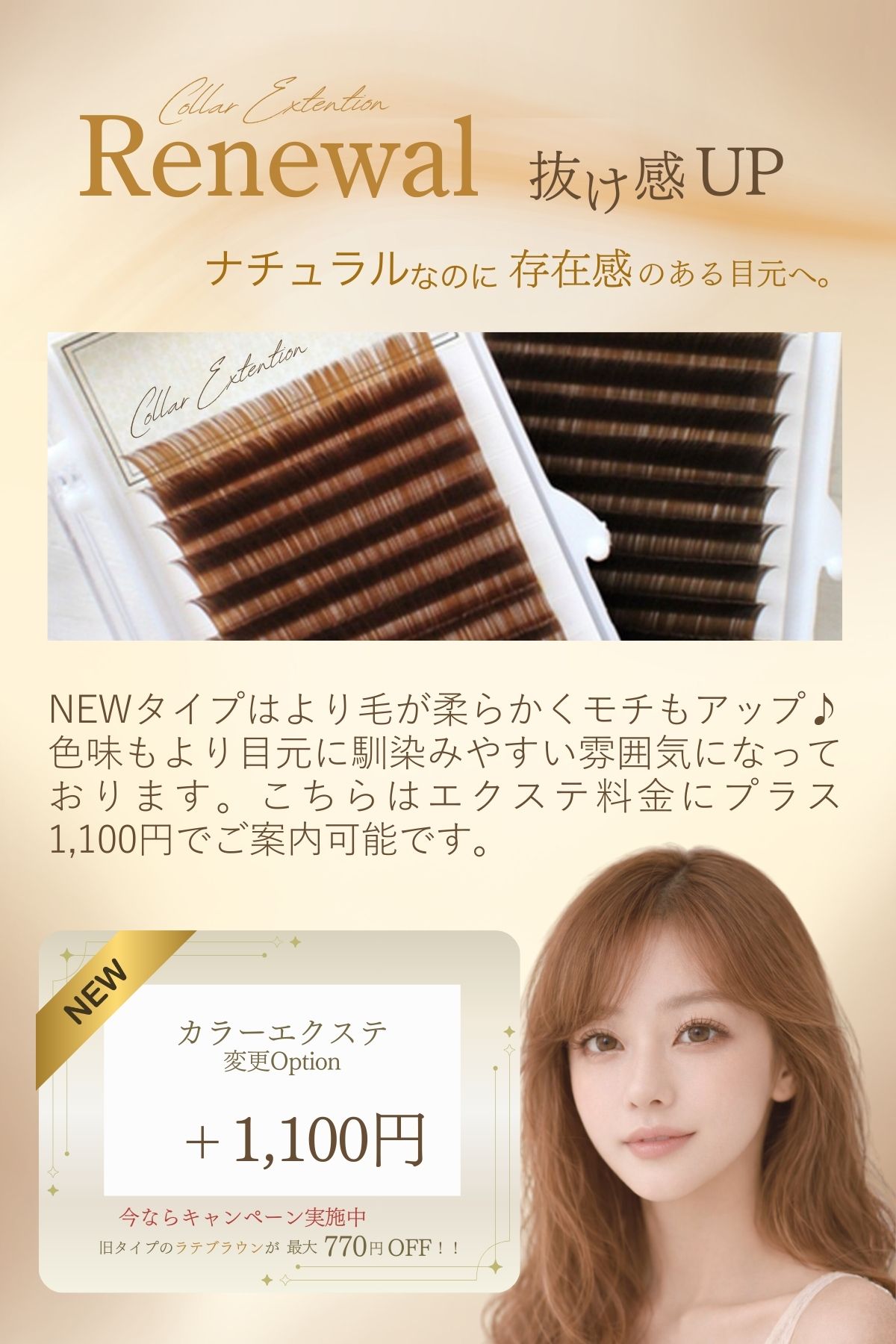 ナチュラル派におすすめ|ラテブラウンカラーエクステNew!特別価格のご案内