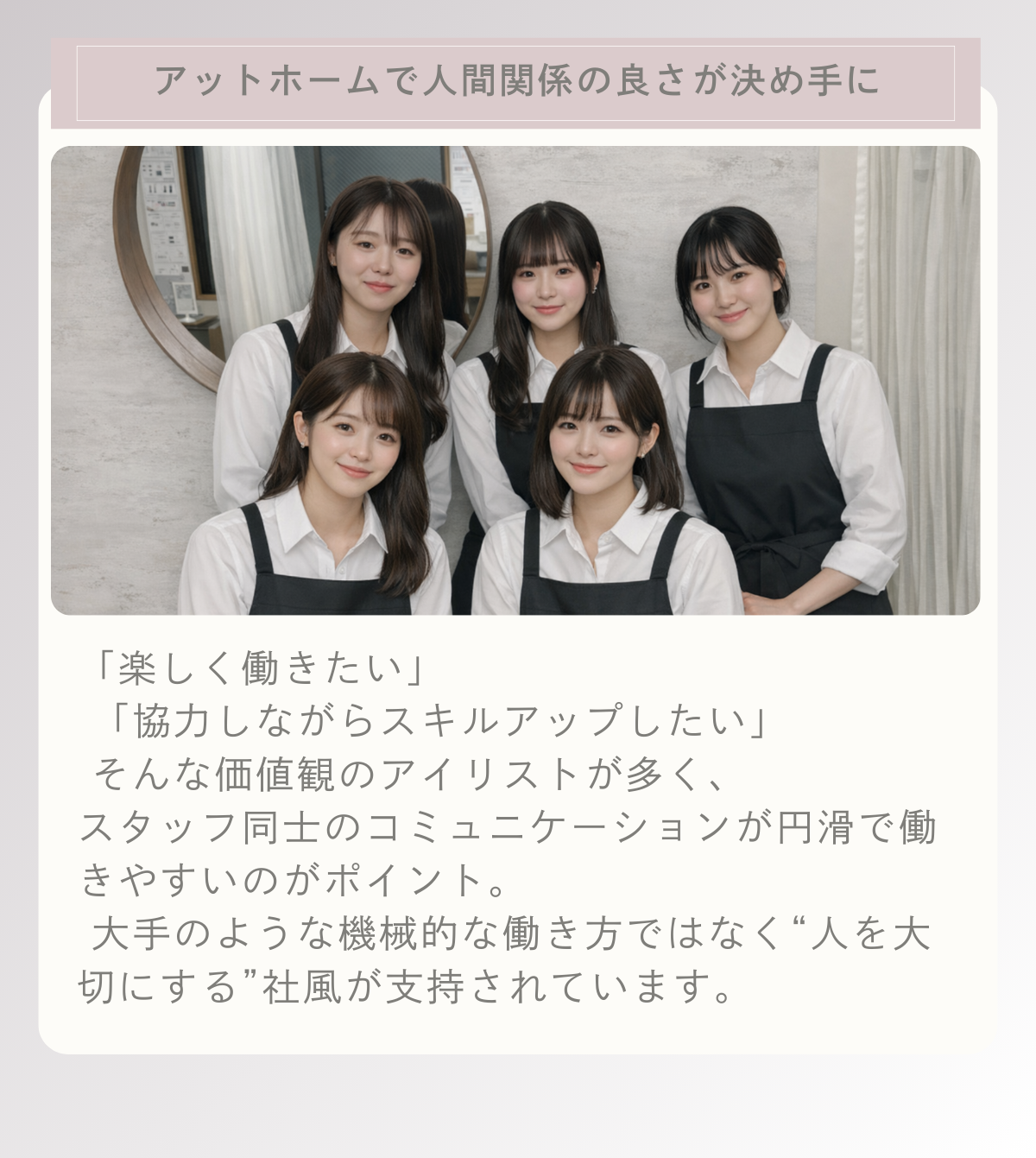 まずはサロン見学からという方も、地方からオンライン面接をご希望の方もまずはmineart&VILLAVOの求人専用「公式LINE」からお友達登録をして