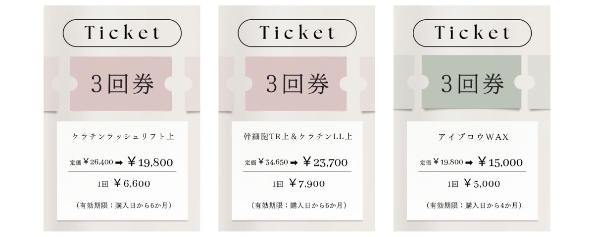 (通常 1回 6,000円 → 3回 5,000円/有効期限:3ヶ月)